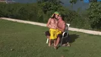 In a lush green meadow, bathed in the golden rays of sunset, passion ignites between two adults who have been craving each others touch for far too long.The woman, with her generous bosoms spilling out from her seductive lace bra and her curvy hips swaying with each step, couldnt resist the call of desire any longer.The man, a tall figure who could give a Greek god a run for his money, grins widely at her approach.His muscular arms are toned and tanned from the outdoors, making her heart race faster than ever.As they lock eyes and the sexual tension between them reaches fever pitch, they decide to act on their urge in the most erotic and thrilling of settings the great outdoors.She drops to her knees, eager to please him any way she can.Her plump lips wrap around his impressive, engorged shaft, and she goes to town, using all her skills to give him a mindblowing blowjob.The cocksuckers saliva glistens on the cock, setting it up for ultimate penetration.Once he cant take it any longer, they switch roles, as he eagerly peels down her lace panties and digs his tongue into her tender clit and vulva, causing her to moan in ecstasy.His hands explore her body while fingering her labia, and she revels in the outdoor pleasure.The cocksuckers fingers work in harmony with his tongue as they bring her closer and closer to orgasm.The woman decides to take control now, riding him cowgirl style, her ass bouncing in perfect sync with her pelvic movements, allowing his dick to delve deep into the depths of her wet pussy.She holds onto his shoulders for support as he penetrates her, feeling every inch of his shaft stretching and filling her up, the cocksucker and the outdoor adding more thrill and excitement.He then flips her onto her hands and knees in doggy style position, giving him access to her ass and butt for some kinky outdoor play.His cock slides smoothly between her butt cheeks before pushing into her ass, a little hesitant but with every nod of agreement from the woman, he starts fingering and massaging her clit at the same time.His nuts swinging heavily as he thrusts deeper, he fucks her, bringing both their climaxes closer.Her boobs bounce wildly in time, a clear sign of the passion she has for outdoor delights.They reach a crescendo together, experiencing a pleasure that only the great outdoors can offer, leaving them breathless and drenched in the sweet nectar of each others lust.