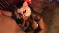 In the erotically-charged video titled She Rides Him, Wearing Her Kitty Mask, a passionate couple takes on an adventure full of intense lust and desire.The man can't help but be mesmerized by his lover, adorned in her sultry kitty mask that only heightens their intimate moments together.Their passion is ignited from the beginning, with the woman taking control as she skillfully performs a blowjob on her partner, eagerly satisfying his cock through her enthusiastic oral skills.The sight of her riding him, the way she bounces up and down, causes both their excitement to build, their moans filling the room.Their bodies writhe with pleasure in various positions, each more sensual than the last, as they explore one another's desires.With their hands intertwined, the woman demonstrates her masterful art of cock sucking, never failing to please her man by skillfully caressing and licking his labia before zeroing in on her target, his erect clit, all while keeping eye contact to deepen their connection.As the video continues, it moves towards a climactic fucking session with both partners eager to indulge in penetration, where she impales herself onto him in cowgirl position.Their bodies become entwined, each thrust bringing them closer to an intense release that they share with a passion-filled cumshot, leaving their bodies trembling and sated.Their dirty talk throughout the video only serves to fuel their passion even further.As they move into new positions, each more exciting than the last, their skin glistens with sweat as they take on different forms of fucking.Their pleasure grows until finally, in a climactic doggystyle finish, the woman reaches an electrifying orgasm as she rides him, her kitty mask providing an erotic touch that pushes them both towards ecstasy.Overall, She Rides Him, Wearing Her Kitty Mask is a steamy and sensual video full of explicit scenes that will make your heart race and leave you yearning for more.With each passionate encounter, this adult film showcases the depths of human connection and lust through its unforgettable portrayal of people indulging in their most intimate desires.